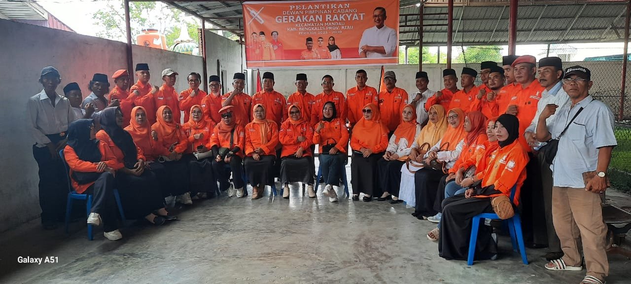 Dewan Pimpinan Daerah (DPD) Gerakan Rakyat Kabupaten Bengkalis resmi melantik dua kepengurusan baru untuk Dewan Pimpinan Cabang (DPC) Kecamatan Mandau dan Kecamatan Bathin Solapan, Minggu (21 September 2025).