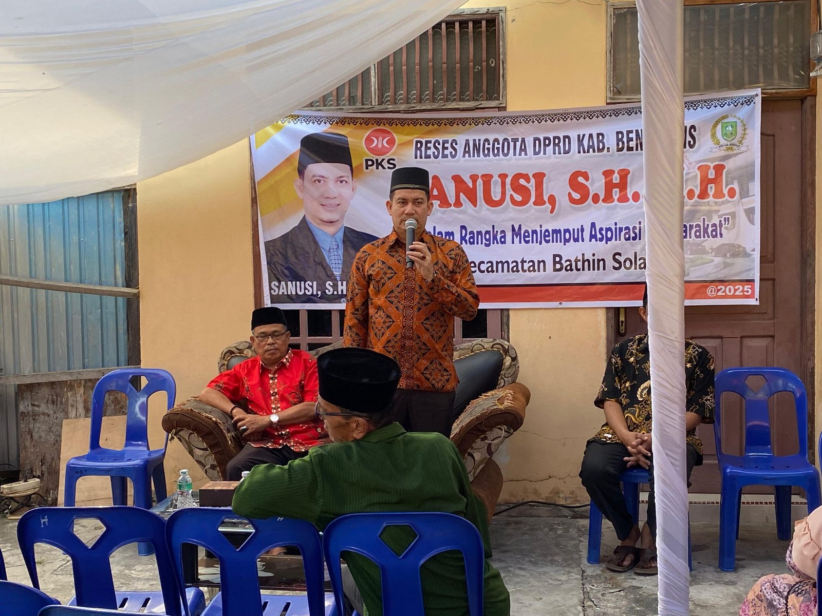 Ratusan warga memadati kegiatan reses ke-8 Anggota DPRD Kabupaten Bengkalis, Sanusi, S.H., M.H., yang digelar Sabtu, 12 Juli 2025, di kediaman Bapak Nofriandi, Jalan Sekolah RT 03 RW 01, Desa Batang Dui, Kecamatan Bathin Solapan.
