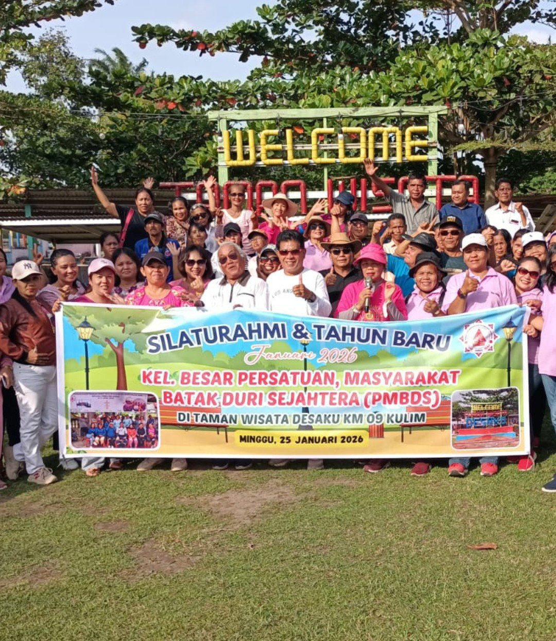 Keluarga Besar Persatuan Masyarakat Batak Duri Sejahtera (PMBDS) menggelar kegiatan Silaturahmi dan Perayaan Tahun Baru 2026 yang berlangsung penuh kehangatan dan kebersamaan, Minggu (25/1/2026), di Taman Wisata Desaku KM 09 Kulim.