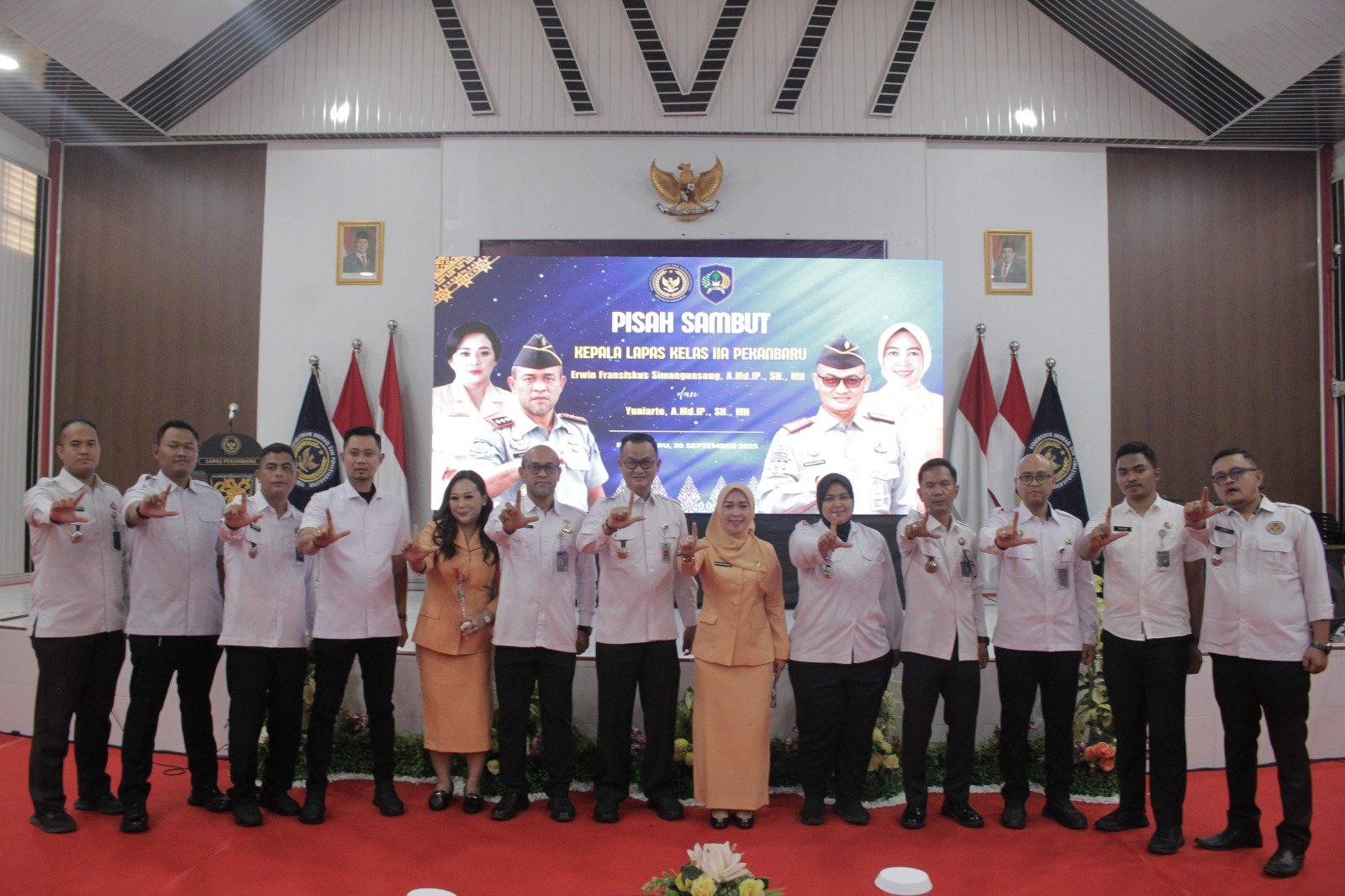 Suasana haru dan penuh kekhidmatan menyelimuti prosesi serah terima jabatan (sertijab) dan pisah sambut Kepala Lembaga Pemasyarakatan (Kalapas) Kelas IIA Pekanbaru, Selasa (30/9/2025) di Aula Sahardjo Lapas Pekanbaru.