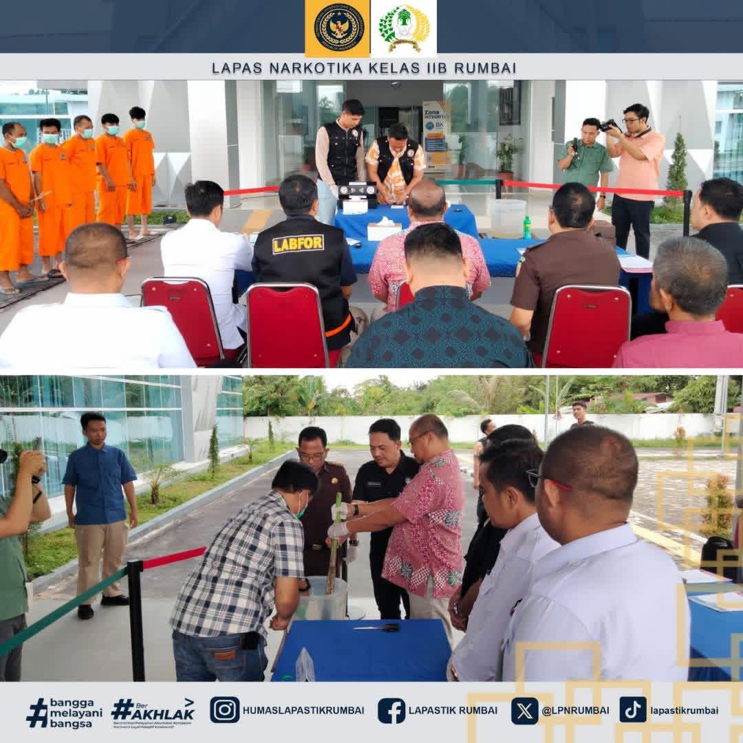 Sebagai wujud komitmen dalam mendukung 13 Program Akselerasi Menteri Imigrasi dan Pemasyarakatan, Lembaga Pemasyarakatan (Lapas) Narkotika Kelas IIB Rumbai menghadiri kegiatan pemusnahan barang bukti narkoba di Kantor BNN Provinsi Riau, Kamis (4/12/2025). Lapas Narkotika Rumbai diwakili oleh Kepala Seksi Administrasi Keamanan dan Ketertiban, Edoward Nikelini, beserta jajaran.