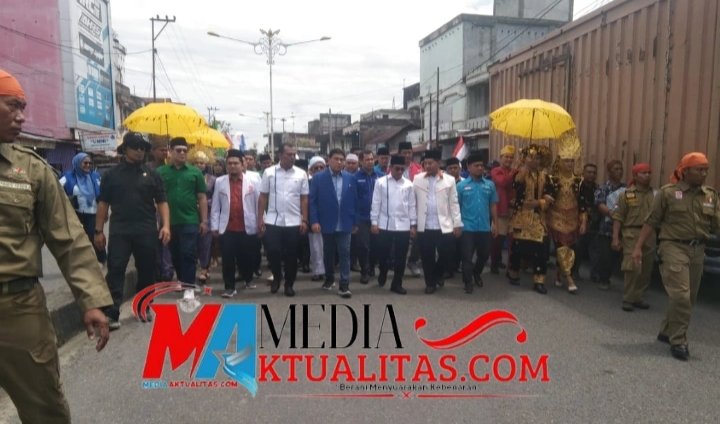 Sementara itu, Kelmi Amri bakal calon Bupati didampingi oleh Wacabup Asparaini, mengaku pendaftaran hari ini didukung oleh Partai Demokrat, Partai PKS, Partai P3, Partai Gelora, dan Partai Solidaritas Indonesia (PSI).