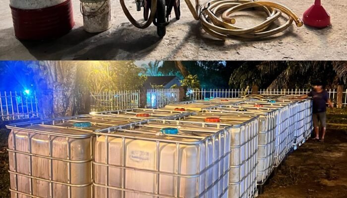 “Di sini kami mendapatkan barang bukti 18 Babytank yang mana 1 Babytank ± 1.000 liter solar subsidi, 1 buah drum yang sudah dipotong, 1 buah ember cat, 1 buah corong minyak plastik dan 1 buah selang dengan panjang 1.2 meter beserta 1 tersangka berisinial AG ” ungkap Kapolsek Kompol Hairul Kamis (28/3/24).
