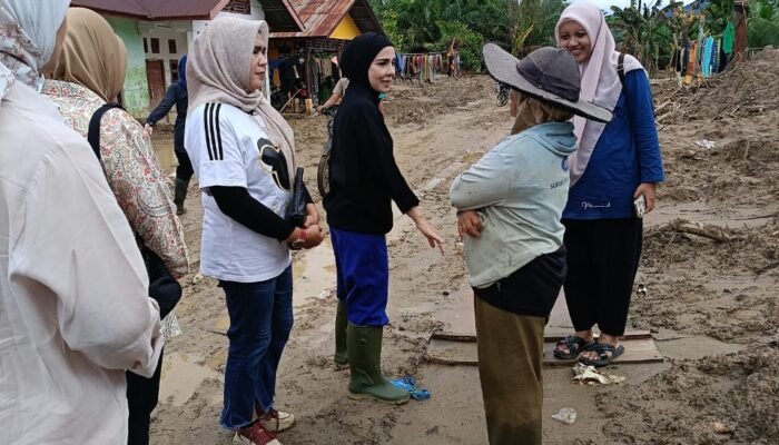 Ketua Tim Penggerak PKK Kabupaten Tapanuli Selatan, Ny. Murni Gus Irawan, bersama Wakil Ketua TP PKK dan rombongan, melakukan monitoring sekaligus menyalurkan bantuan bagi para korban banjir di Dusun Benteng, Desa Hapesong Baru, Kecamatan Batang Toru, pada Minggu siang(7/12/2025).